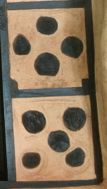 O piso interno foi construído a partir da técnica do solocimento (15% de cimento e 85% de solo argiloso). Tijolos maciços foram utilizados como soleiras de portas e também como juntas de dilatação, evitando dessa forma fissuras ou rachaduras no piso.
